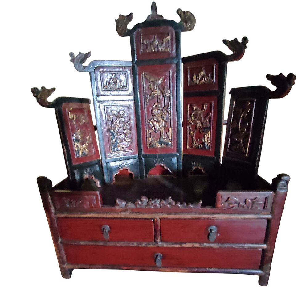 Paravento a quattro ante, laccato e dorato, Cina XIx secolo